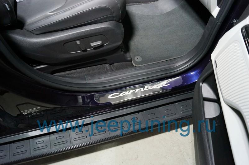 НАКЛАДКИ НА ПОРОГИ 2шт (лист зеркальный) TCC для KIA CARNIVAL