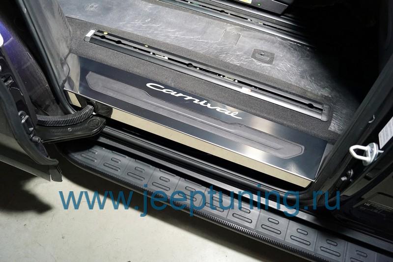 НАКЛАДКИ НА ПЛАСТИКОВЫЕ ПОРОГИ 2шт (лист зеркальный) TCC для KIA CARNIVAL