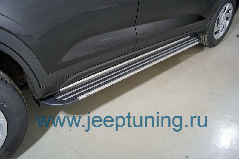 ЗАЩИТА ПОРОГОВ "Slim Line Silver" (алюминий) TCC для HYUNDAI CRETA NEW