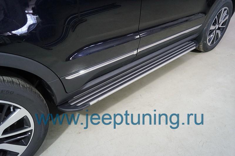 ЗАЩИТА ПОРОГОВ "Slim Line Silver" (алюминиевые) TCC для CHANGAN CS55