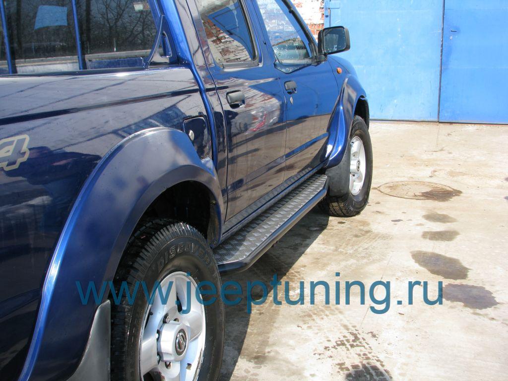 ЗАЩИТА ПОРОГОВ (силовые,стенка трубы 3 мм; накладка из рифлёного аллюминия; сварка не применяется. Черный цвет; порошковый окрас. Порог крепится с помощью двух стремянок)