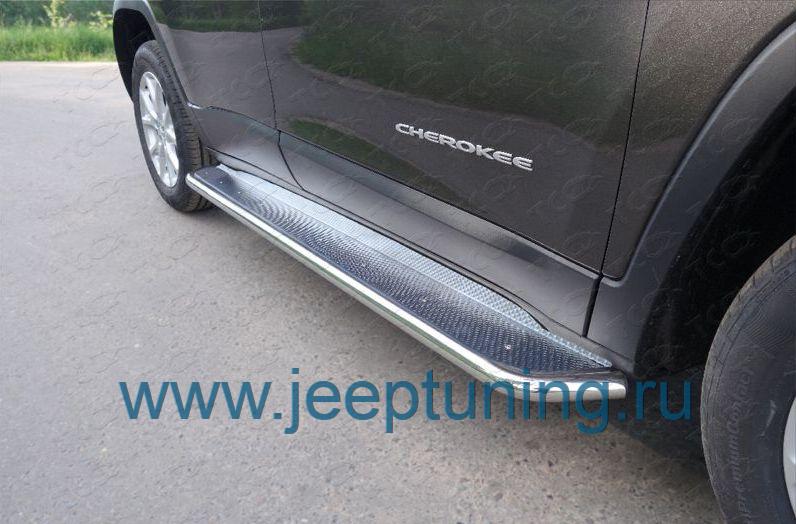 ЗАЩИТА ПОРОГОВ 42мм (лист нерж.) TCC для JEEP CHEROKEE