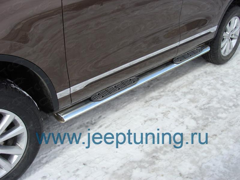 ЗАЩИТА ПОРОГОВ (овальные с накладкой) TCC для VOLKSWAGEN TOUAREG