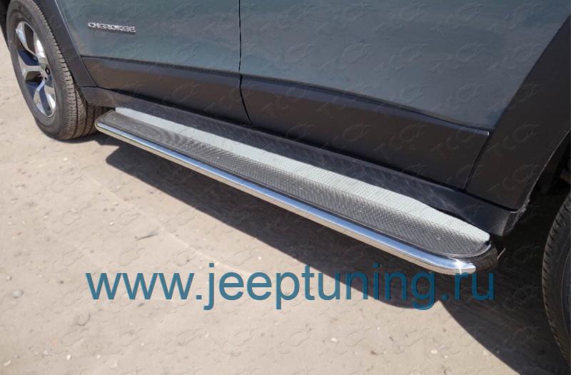 ЗАЩИТА ПОРОГОВ 42мм (лист нерж.) TCC для JEEP CHEROKEE TRAILHAWK