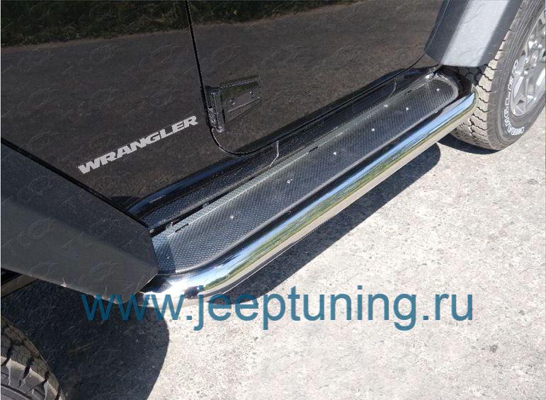 ЗАЩИТА ПОРОГОВ 76мм (3 дв., лист нерж.) TCC для JEEP WRANGLER