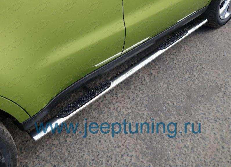 ЗАЩИТА ПОРОГОВ (овальные с накладками) TCC для KIA SOUL