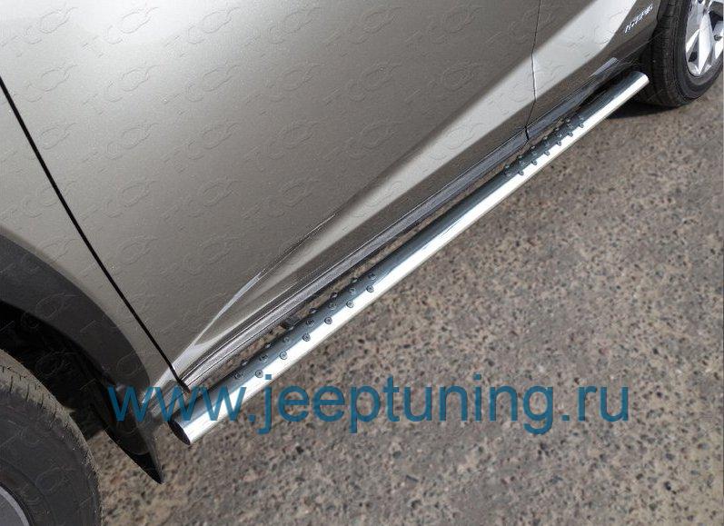 ЗАЩИТА ПОРОГОВ 75x42мм (овальные с проступью) TCC для LEXUS NX 200/200t/300h